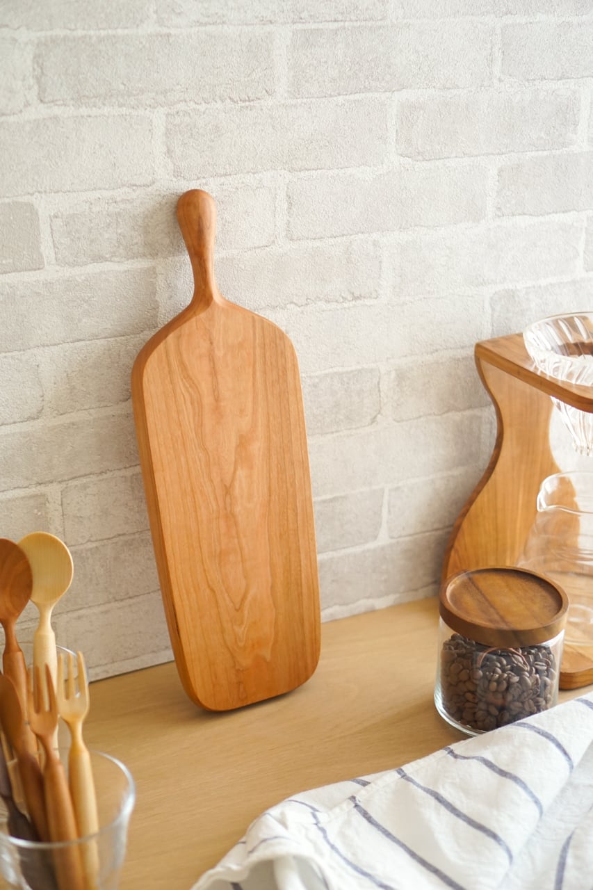 木目の表情も一枚一枚異なるため、置いておくだけでも小さなアートのようにキッチンを彩ります。