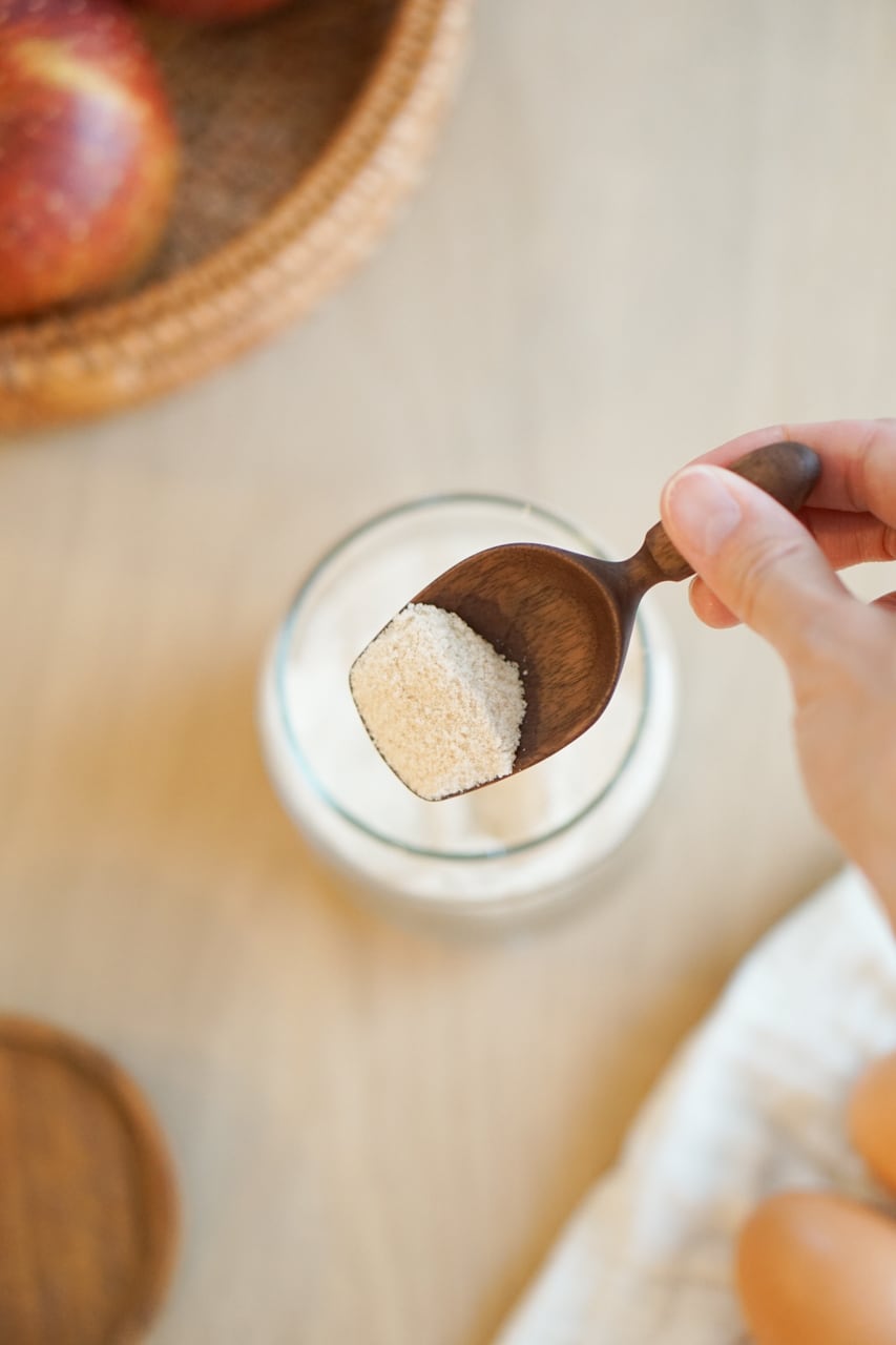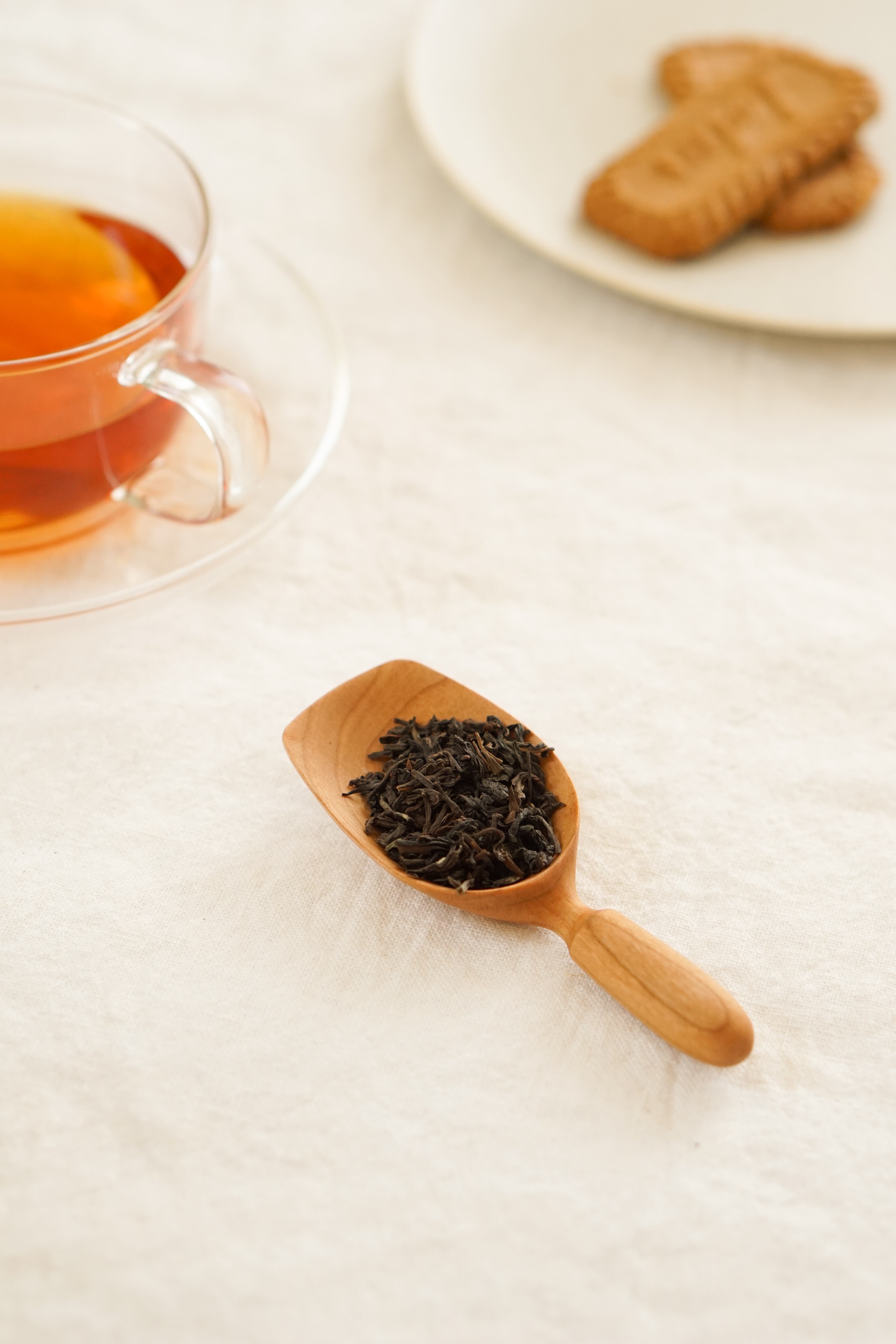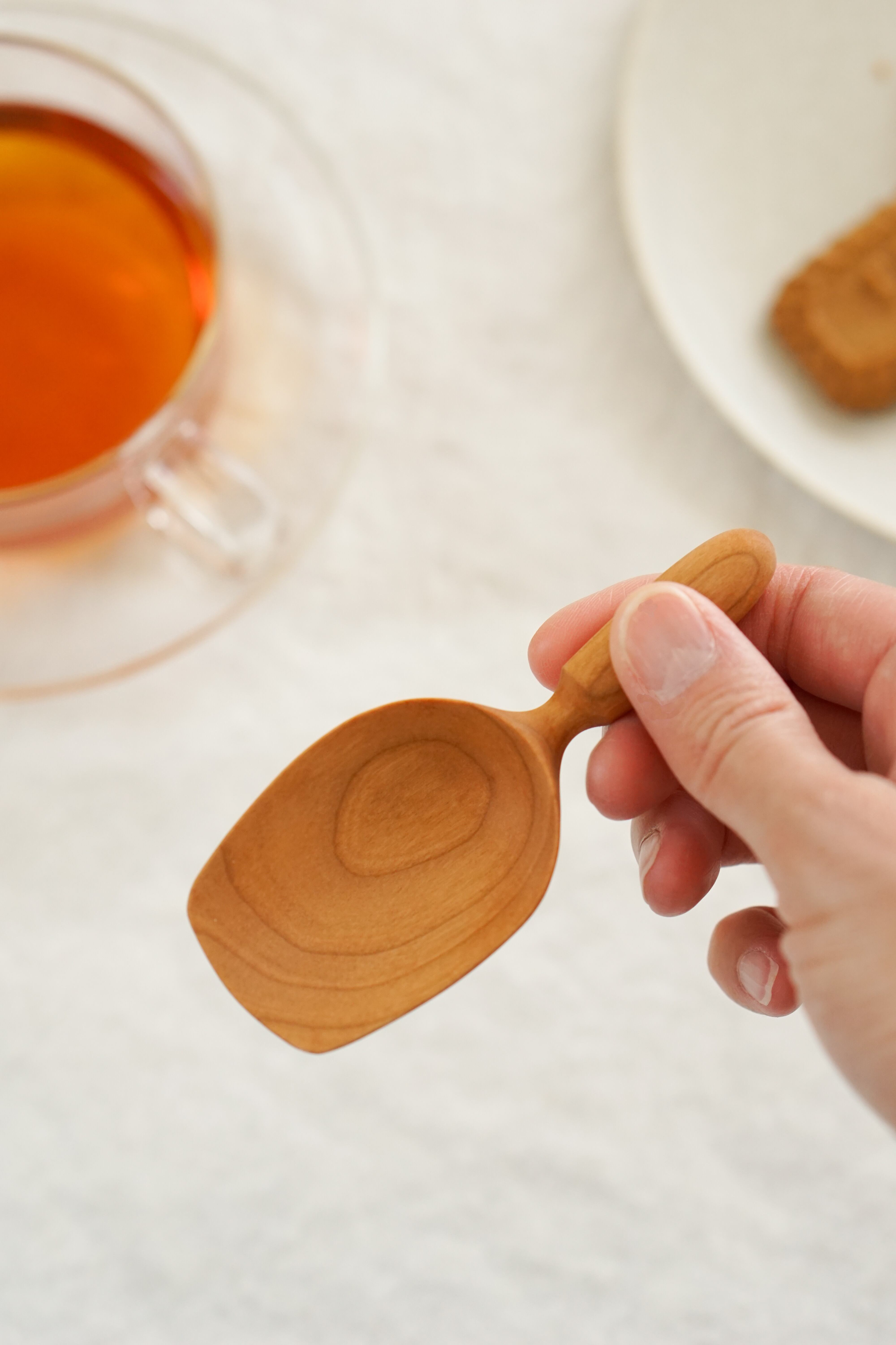 手のひらにすっと収まるサイズ感で、茶葉やお砂糖、塩などをすくうのにちょうど良く、容器にそのまま入れておけるのも嬉しいポイントです。