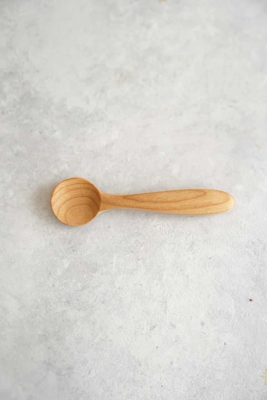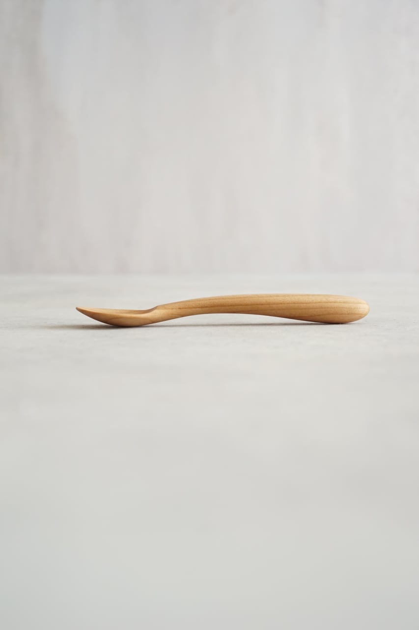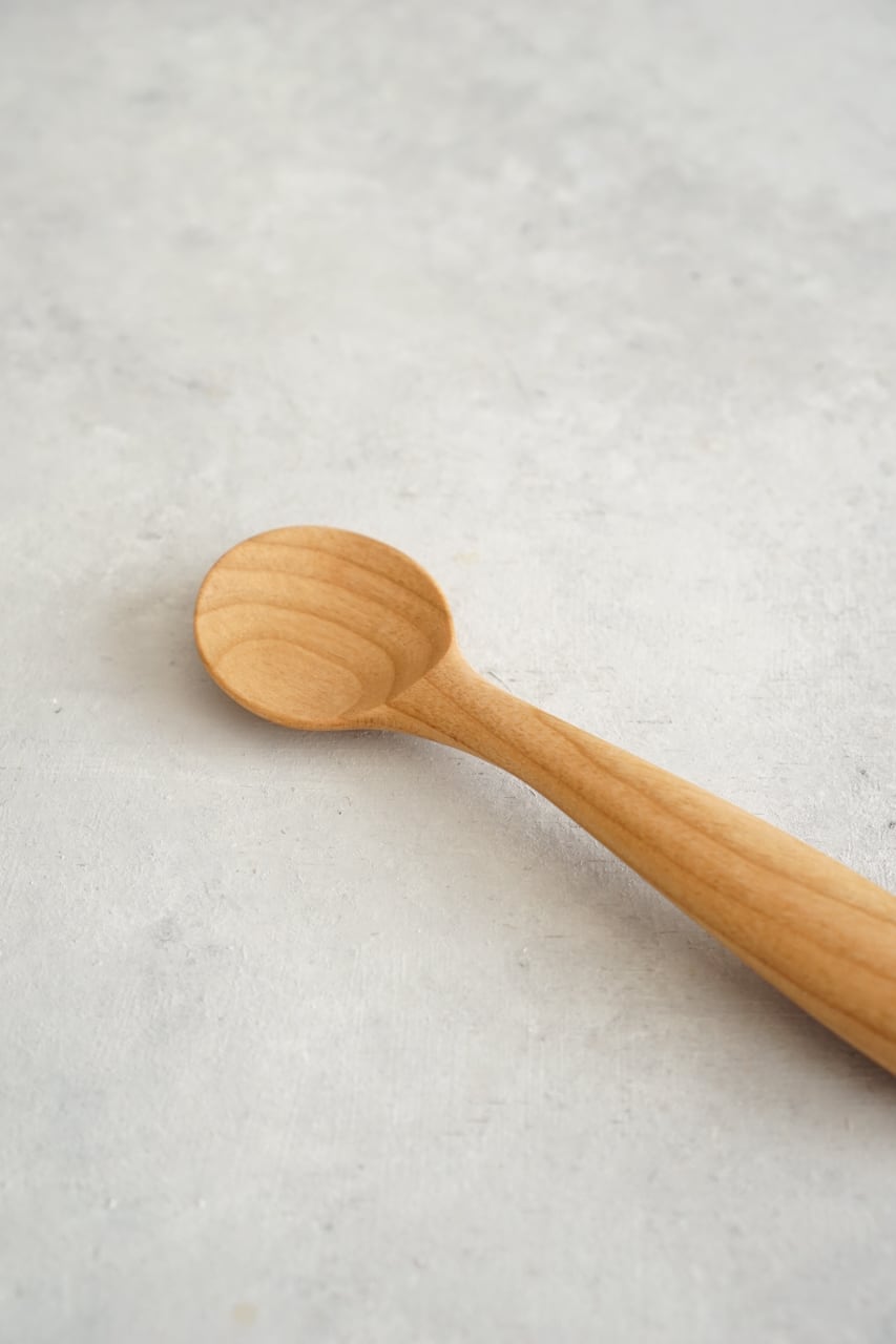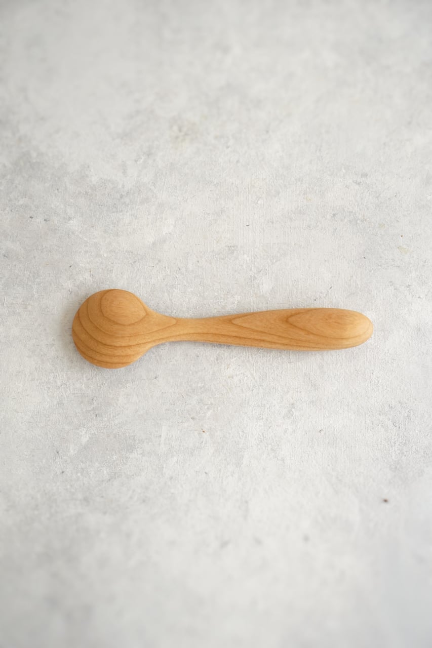 こどもスプーンの持ち手はそのままに、すくう部分は、まるくて可愛いらしい形に。