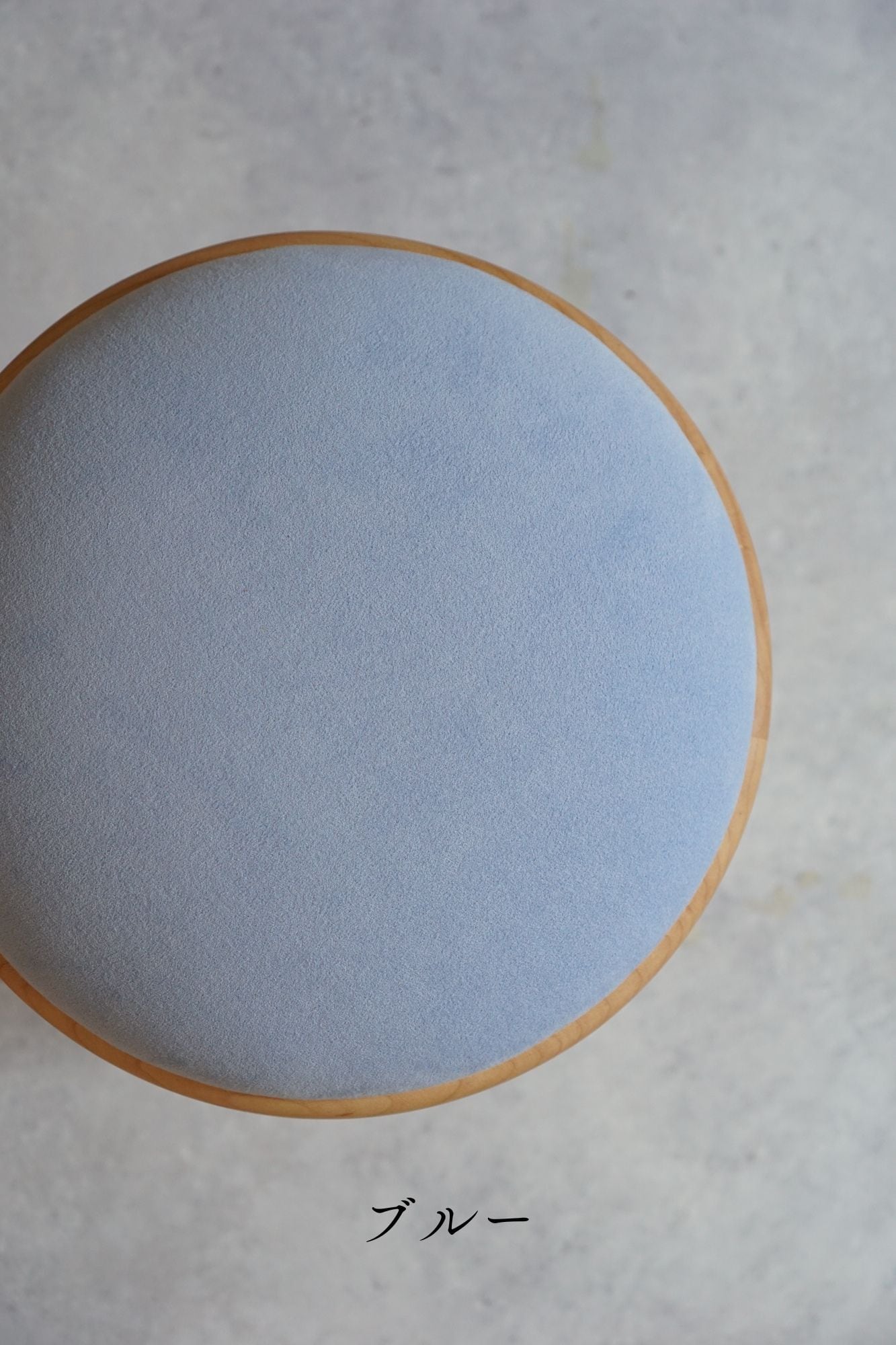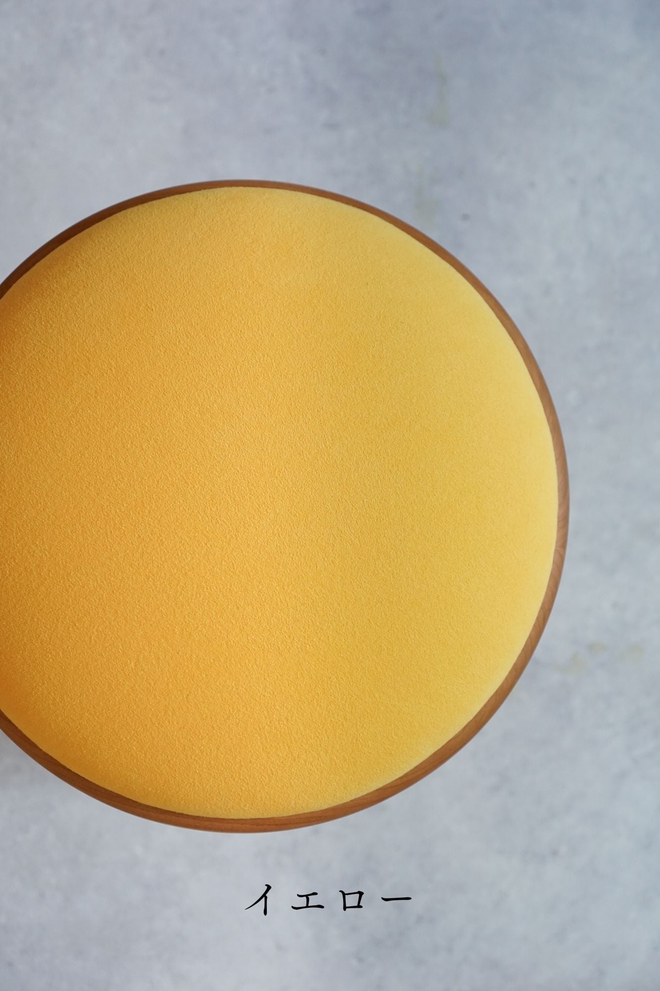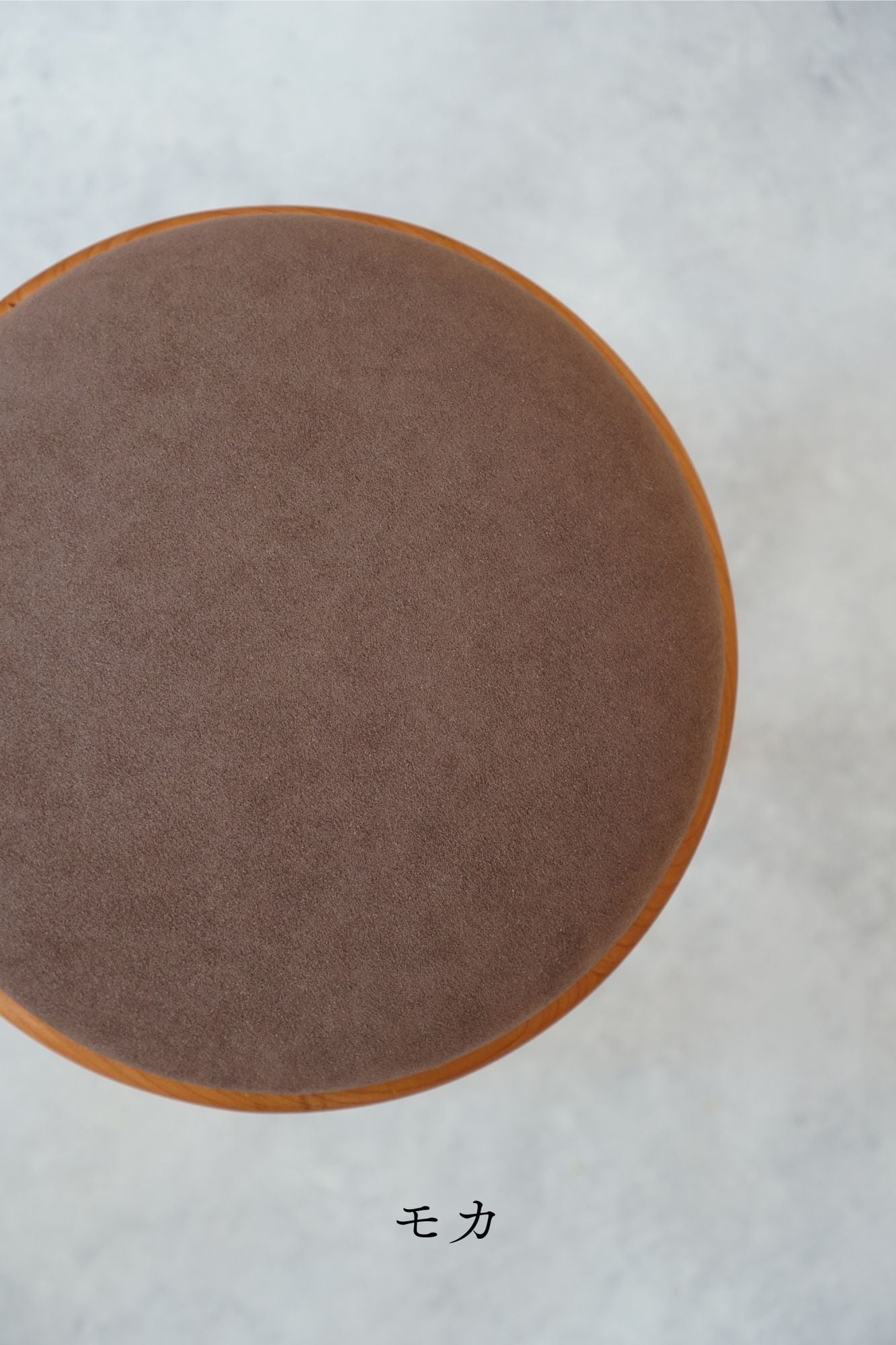 それをぐるりと縁取る、まんまるな木部が特徴のクッションスツールです。