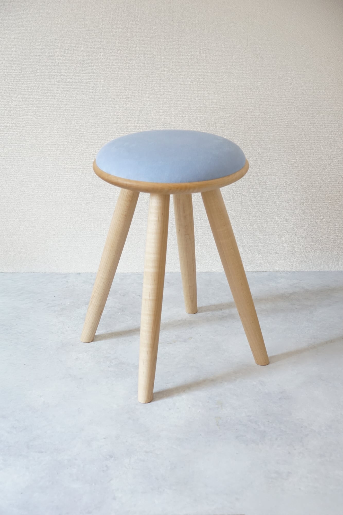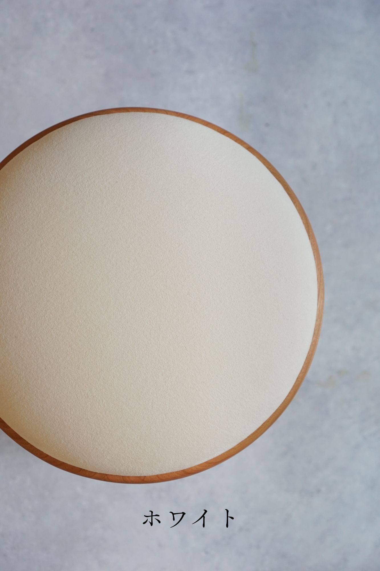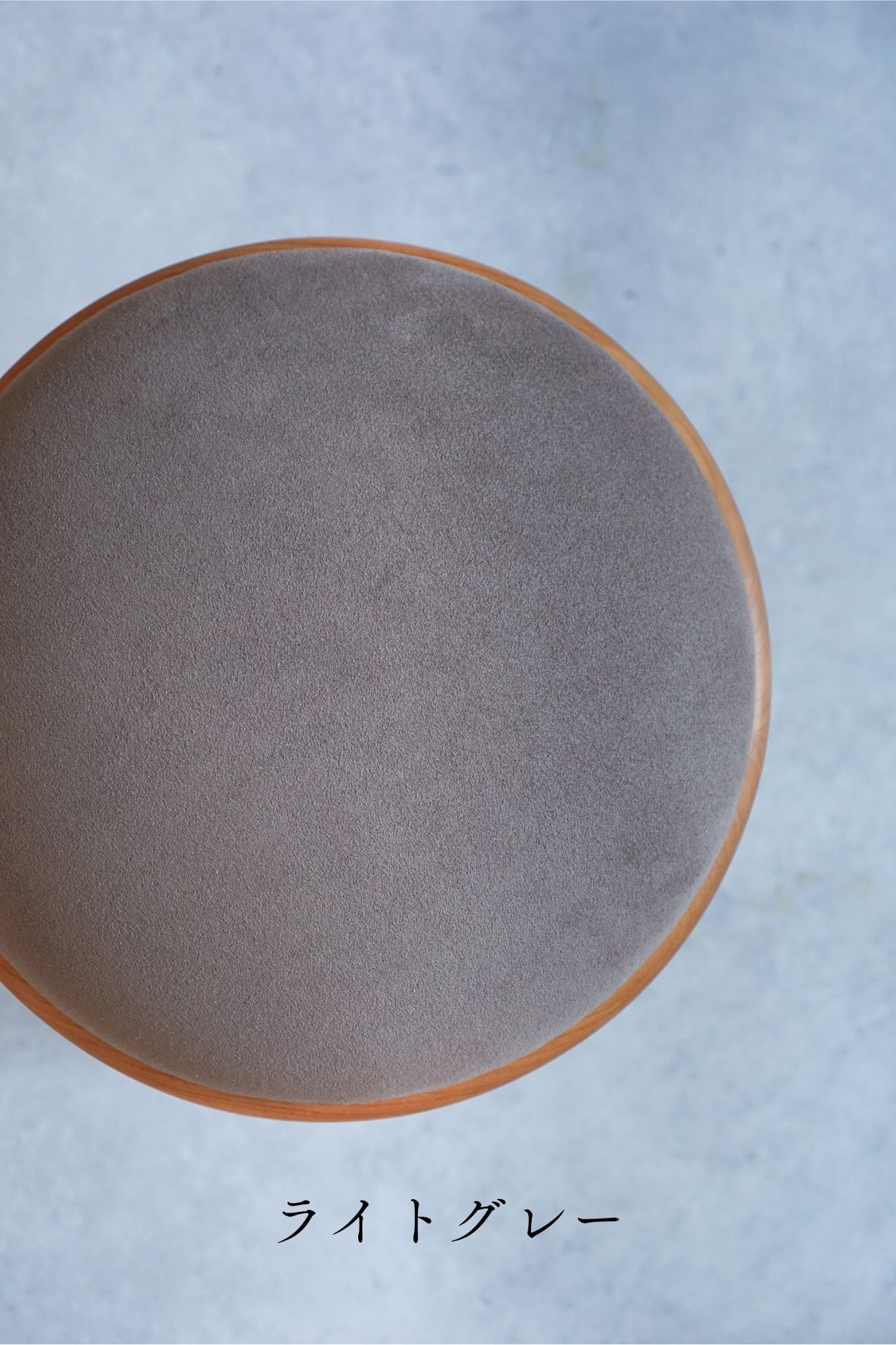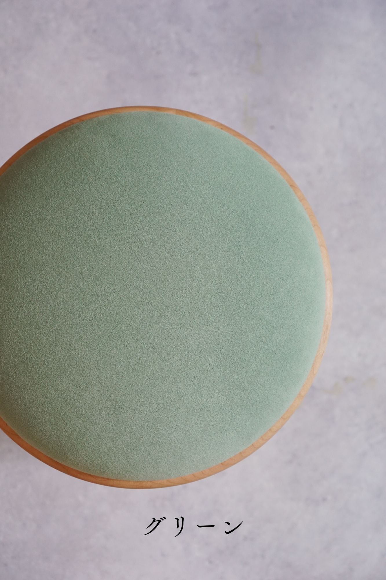 それをぐるりと縁取る、まんまるな木部が特徴のクッションスツールです。
