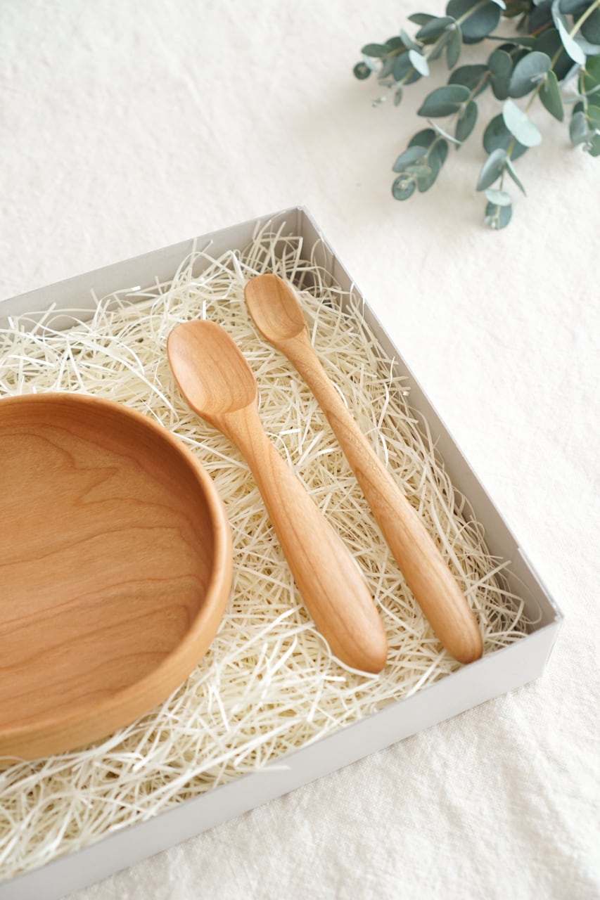 役目が終わった後は、お皿は小物やアクセサリー入れに。ベビースプーンはジャムスプーンやマドラーとしても長くお使いいただけます。